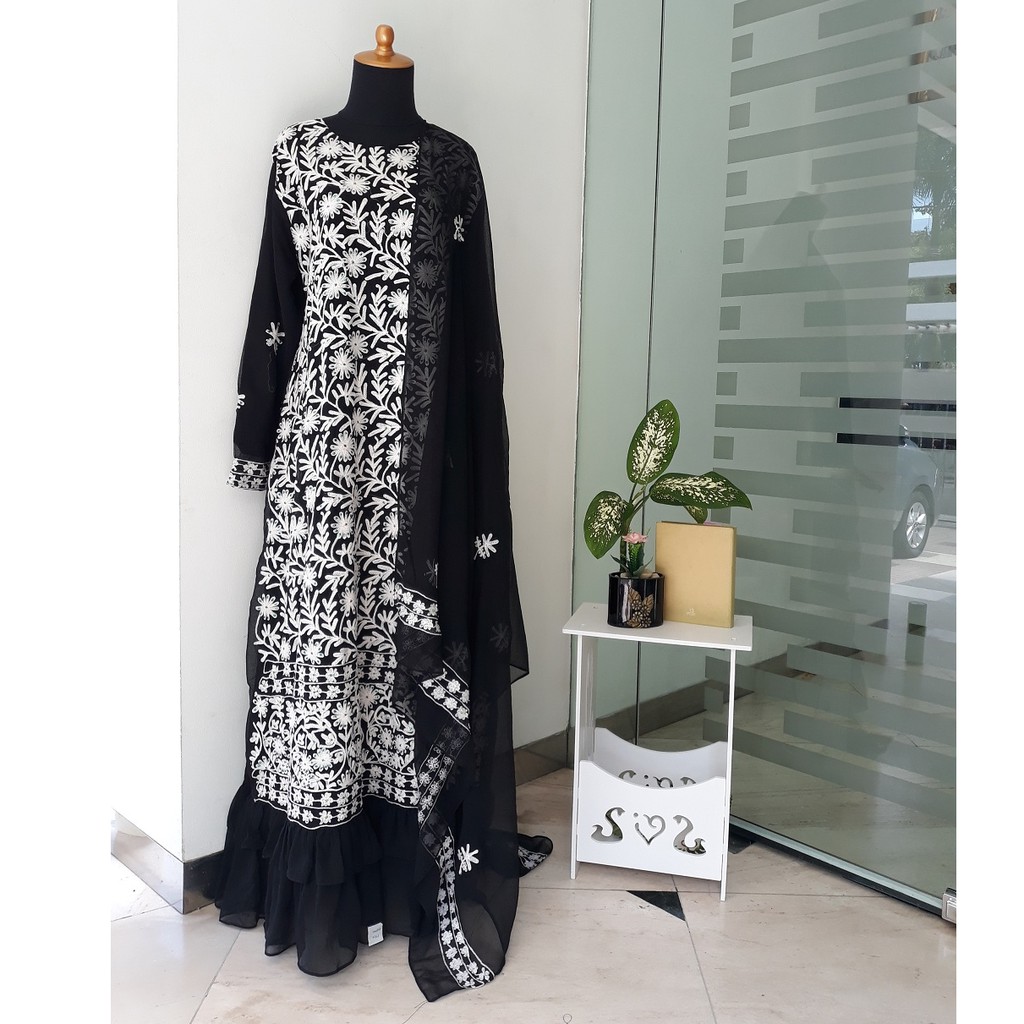 Jual Baju Gamis Sari India Ori Motif Bunga Hitam Black Syari Dress Long Dress Muslim Abaya Indonesia Shopee Indonesia